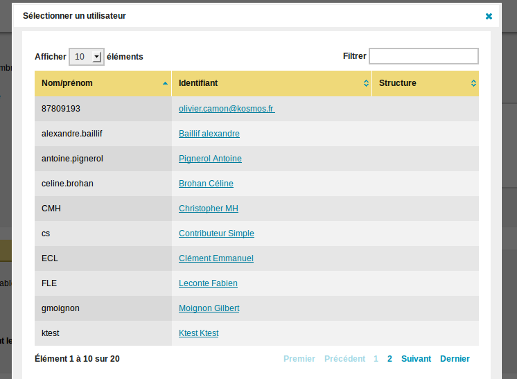 Dans les espaces co, le tableau de résultats de recherche des responsables inverse le contenu des champs login et nom/prénom